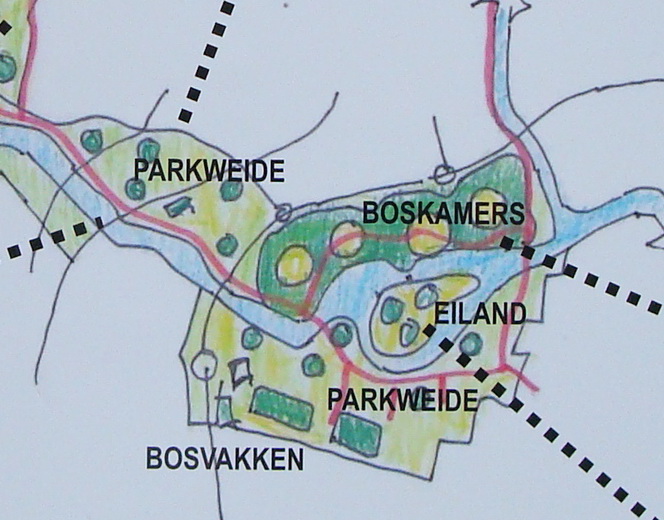 Tijdens een wandeling door het park zelf konden de deelnemers zien waar onze plannen gerealiseerd zouden worden en hoe dat in de praktijk zou uitpakken.